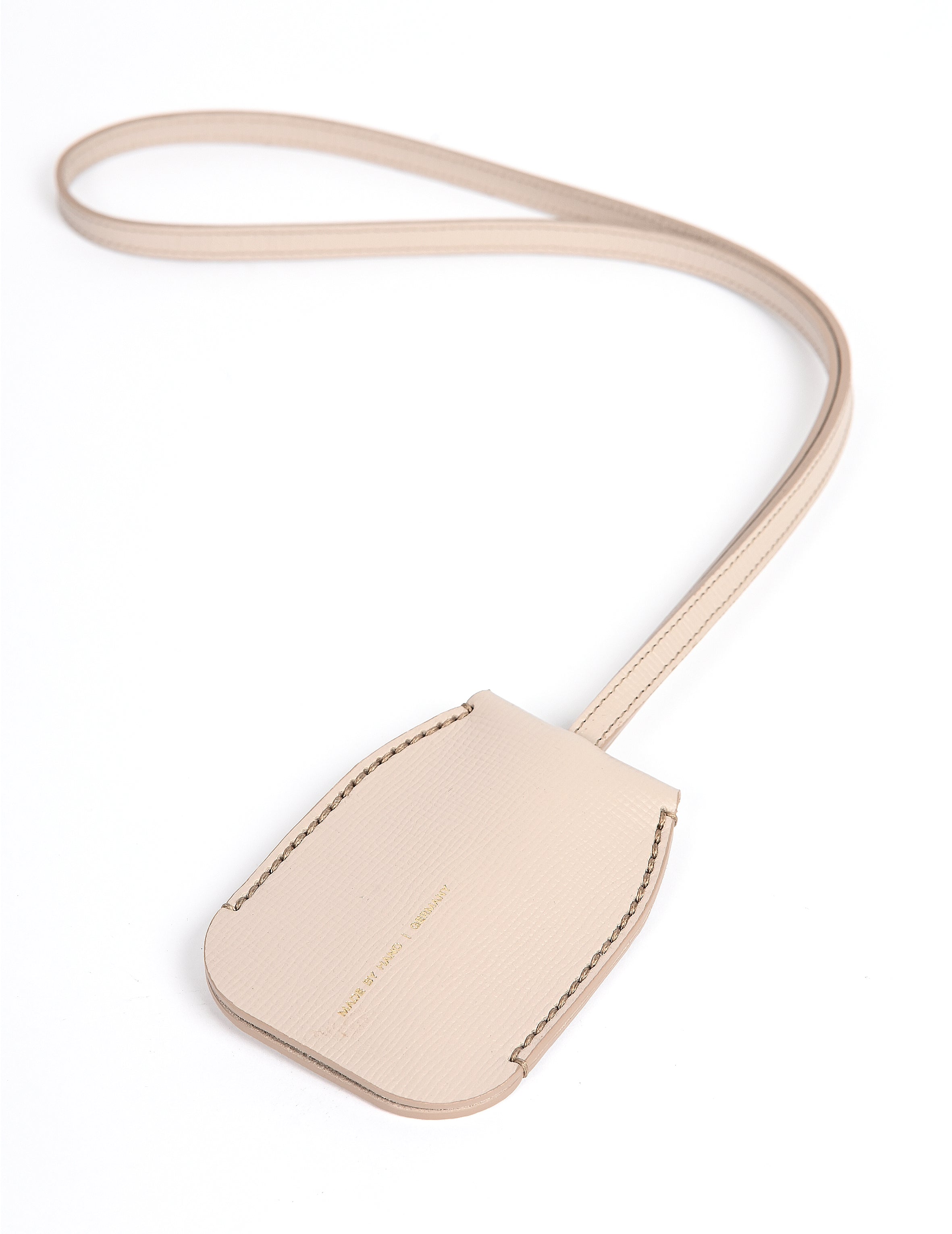Schön gearbeitetes Etui mit Sattlerstich genäht und handgefärbten Kanten. m Inneren befindet sich ein herausziehbarer Ring. Der Anhänger kann entweder am Riemen einer Tasche befestigt und hineingehängt oder direkt um den Hals getragen werden.