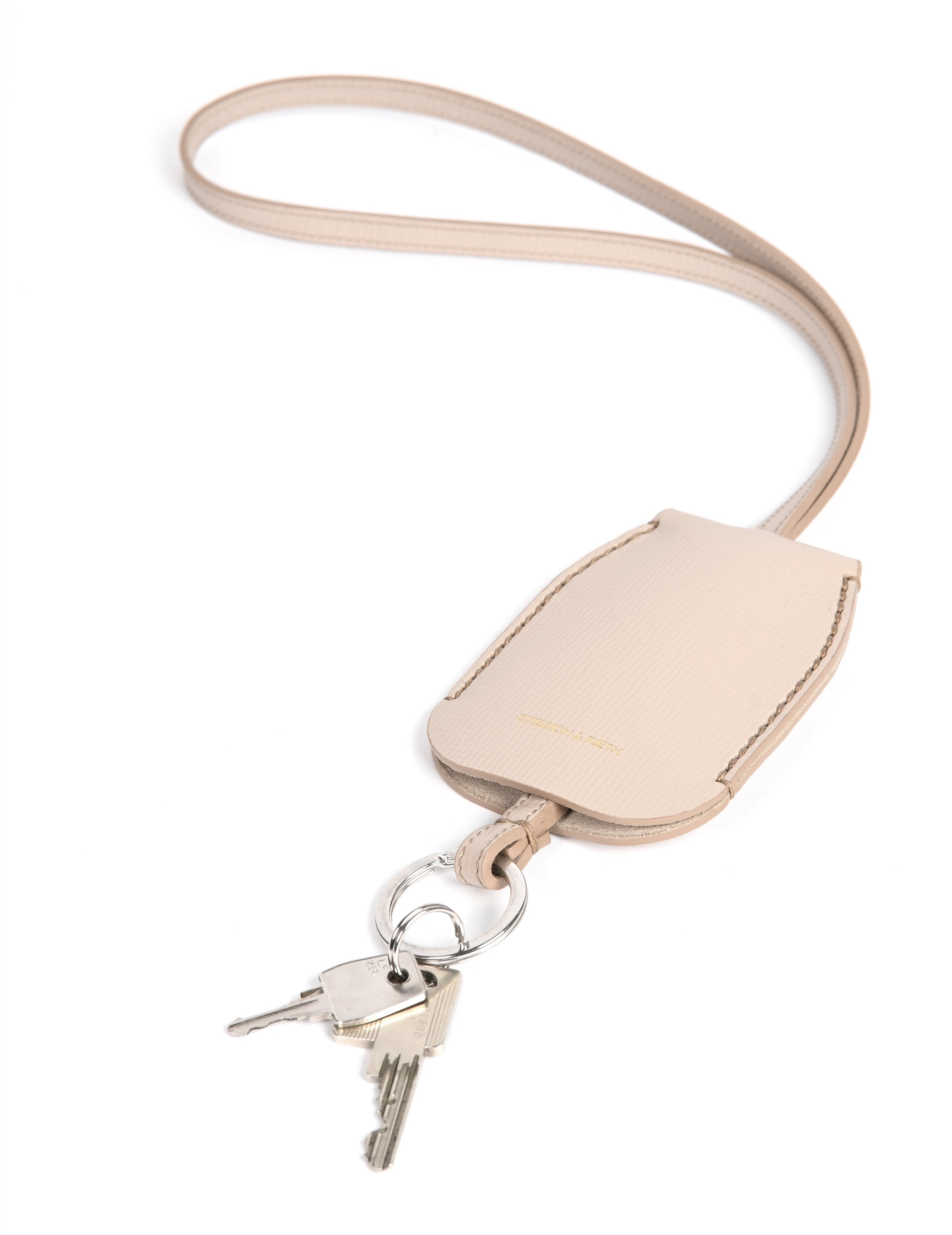 Schlüsseletui-Anhänger mit Schlüsselring und geprägtem Logo.