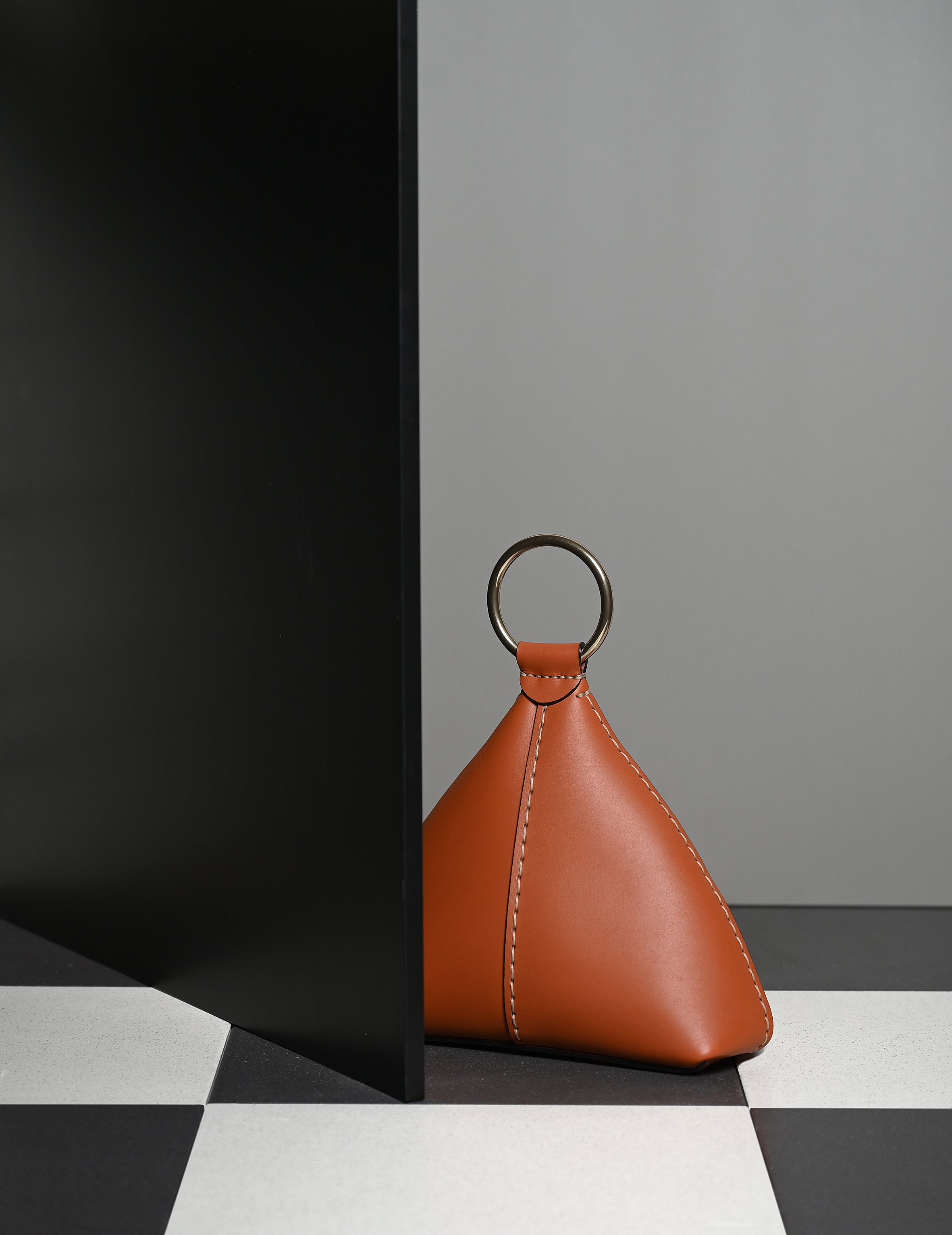 Handgenähter Türstopper aus Leder mit Messingring.