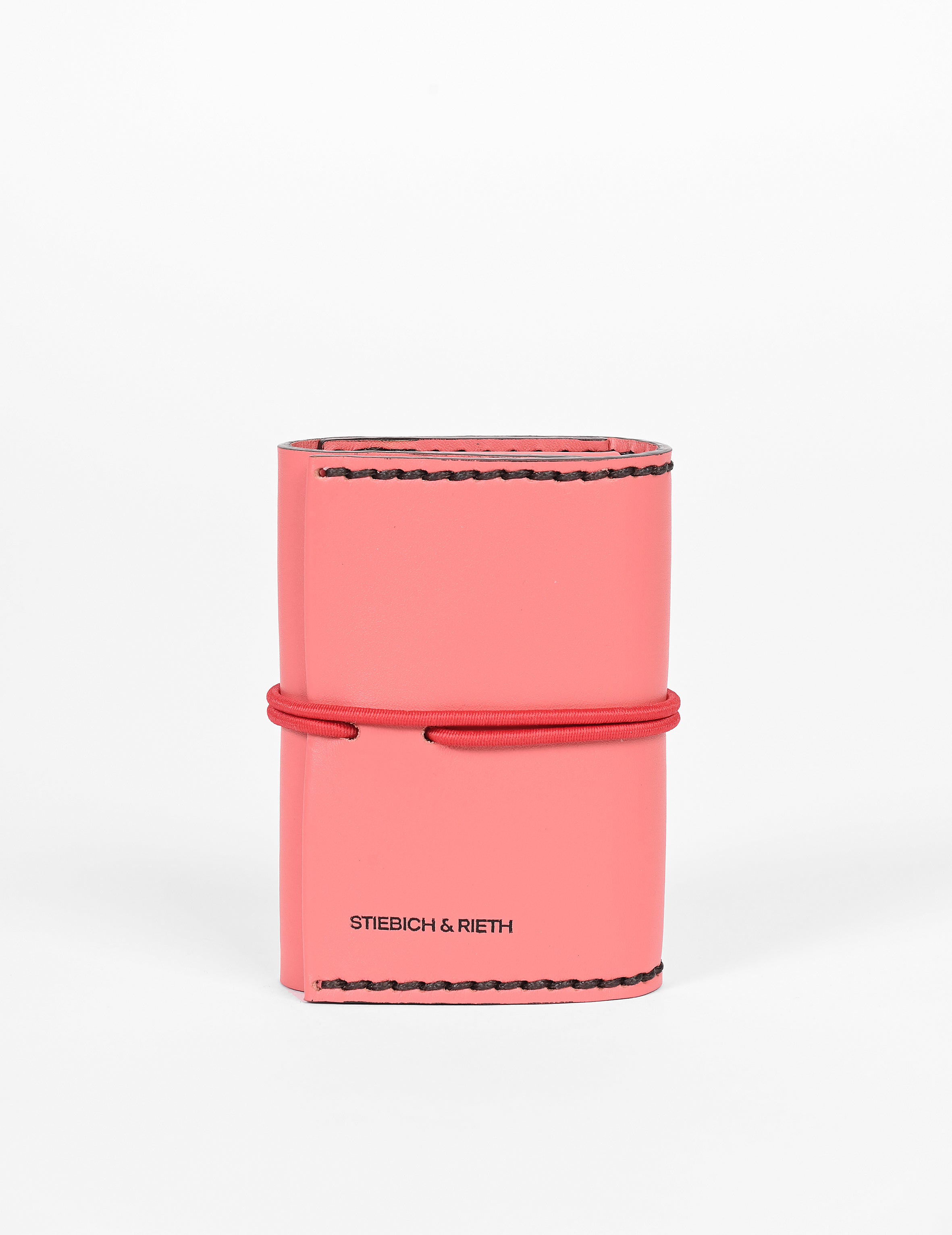 Kleines handgenähtes Portemonnaie mit Kontrastnaht und Gummiband.