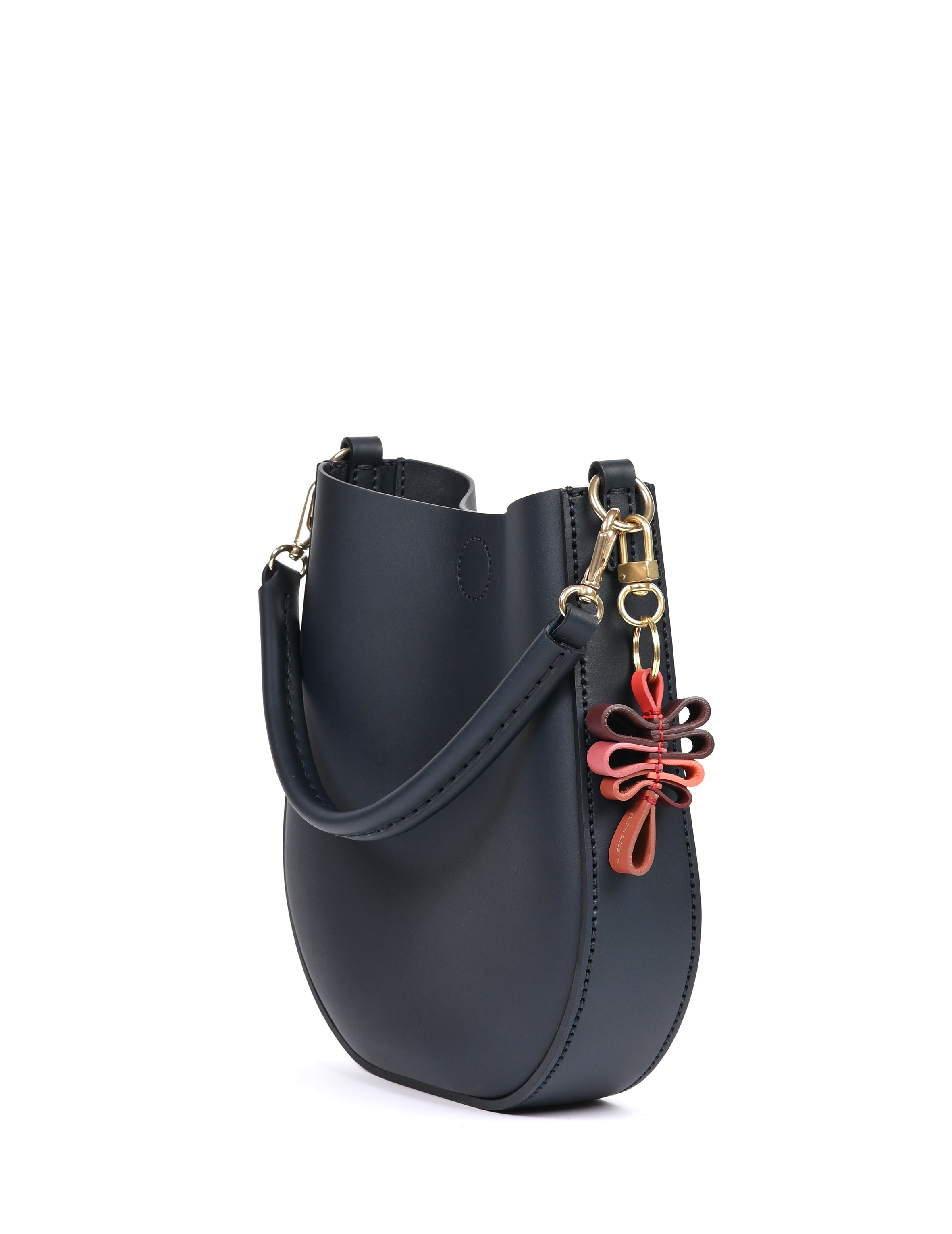 Der Karabiner wird in einem speziellen gebürsteten Finish in Italien hergestellt, wodurch die schöne matte Optik entsteht. Der Lederanhänger wird im Handstich genäht.
